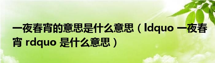 一夜春宵的意思是什么意思(ldquo 一夜春宵 rdquo 是什么意思)