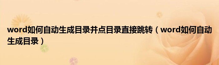 大家好,小飞来为大家解答以上问题,word如何自动生成目录并点目录直接跳转,word如何自动生成目录很多人还不知道,现在让我们一起来看看吧!