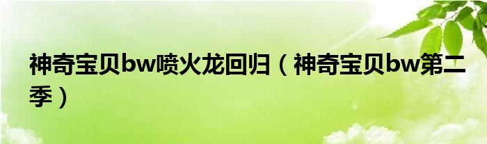 神奇宝贝bw喷火龙回归,神奇宝贝bw第二季这个很多人还不知道,小飞来为大家解答以上的问题。现在让我们一起来看看吧!