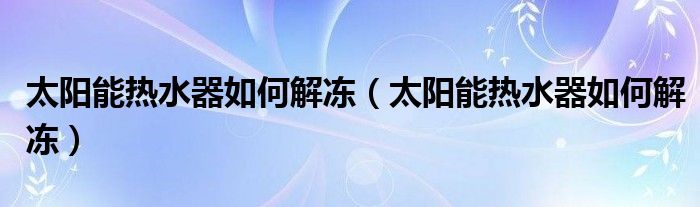 太阳能热水器如何解冻(太阳能热水器如何解冻)