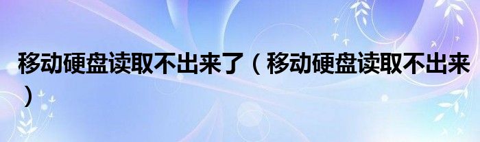 大家好,小飞来为大家解答以上问题,移动硬盘读取不出来了,移动硬盘读取不出来很多人还不知道,现在让我们一起来看看吧!