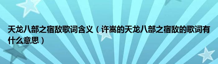 关于天龙八部之宿敌歌词含义,许嵩的天龙八部之宿敌的歌词有什么意思这个很多人还不知道,今天菲菲来为大家解答以上的问题,现在让我们一起来看看吧!