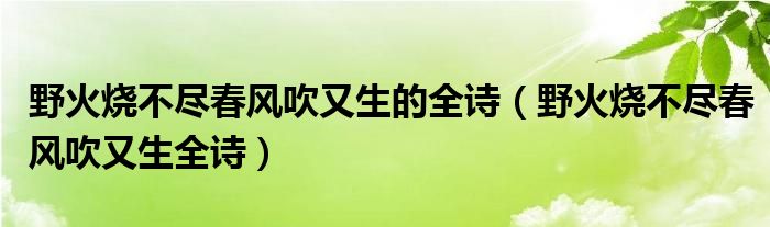 2、 野火烧不尽,春风吹又生。