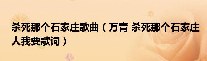 关于杀死那个石家庄歌曲,万青 杀死那个石家庄人我要歌词这个很多人还不知道,今天菲菲来为大家解答以上的问题,现在让我们一起来看看吧!