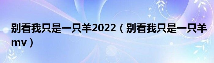 关于别看我只是一只羊2022,别看我只是一只羊mv这个很多人还不知道,今天菲菲来为大家解答以上的问题,现在让我们一起来看看吧!