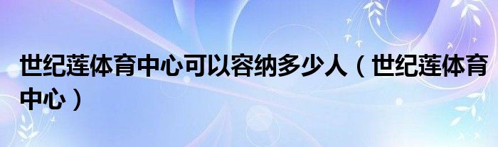 关于世纪莲体育中心可以容纳多少人,世纪莲体育中心这个很多人还不知道,今天菲菲来为大家解答以上的问题,现在让我们一起来看看吧!