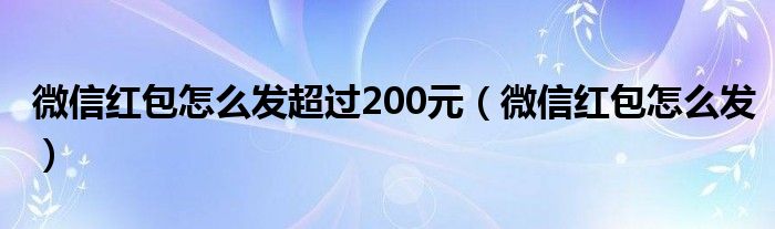大家好,小晋来为大家解答以下问题,关于微信红包怎么发超过200元,微信红包怎么发很多人还不知道,今天让我们一起来看看吧!