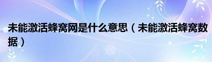 未能激活蜂窝网是什么意思,未能激活蜂窝数据很多人还不知道,乐乐来为大家解答以上问题,现在让我们一起来看看吧!