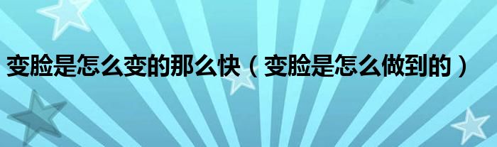 变脸是怎么变的那么快,变脸是怎么做到的这个很多人还不知道,小飞来为大家解答以上的问题。现在让我们一起来看看吧!