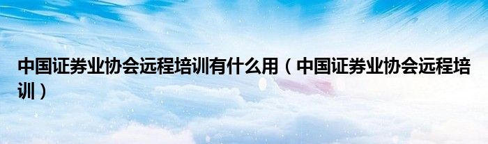 中国证券业协会远程培训有什么用,中国证券业协会远程培训这个很多人还不知道,小飞来为大家解答以上的问题。现在让我们一起来看看吧!