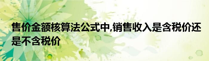 关于售价金额核算法公式中,销售收入是含税价还是不含税价这个很多人还不知道,今天菲菲来为大家解答以上的问题,现在让我们一起来看看吧!