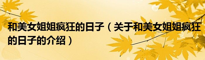 和美女姐姐疯狂的日子(关于和美女姐姐疯狂的日子的介绍)