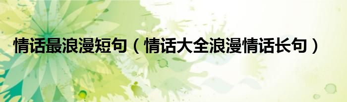 大家好,小晋来为大家解答以下问题,关于情话最浪漫短句,情话大全浪漫情话长句很多人还不知道,今天让我们一起来看看吧!