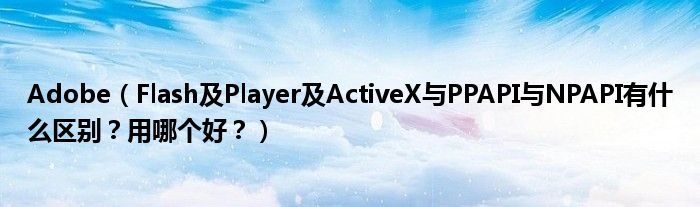 大家好,今天小悦来为大家解答以上问题。Adobe,Flash及Player及ActiveX与PPAPI与NPAPI有什么区别?用哪个好?很多人还不知道,现在让我们一起来看看吧!