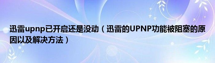 迅雷upnp已开启还是没动(迅雷的UPNP功能被阻塞的原因以及解决方法)
