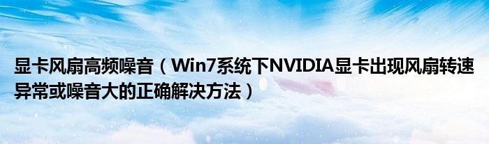 显卡风扇高频噪音(Win7系统下NVIDIA显卡出现风扇转速异常或噪音大的正确解...