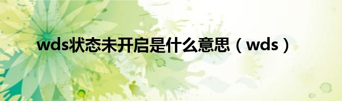 关于wds状态未开启是什么意思,wds这个很多人还不知道,今天菲菲来为大家解答以上的问题,现在让我们一起来看看吧!
