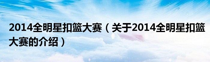 2014全明星扣篮大赛(关于2014全明星扣篮大赛的介绍)