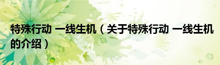 大家好,今天小乐来为大家解答以上的问题。特殊行动 一线生机,关于特殊行动 一线生机的介绍很多人还不知道,现在让我们一起来看看吧!