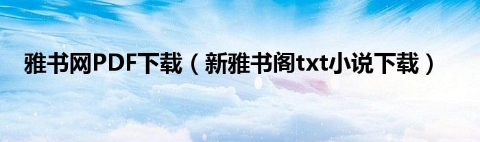 关于雅书网PDF下载,新雅书阁txt小说下载这个很多人还不知道,今天菲菲来为大家解答以上的问题,现在让我们一起来看看吧!
