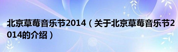 大家好,今天小乐来为大家解答以上的问题。北京草莓音乐节2014,关于北京草莓音乐节2014的介绍很多人还不知道,现在让我们一起来看看吧!