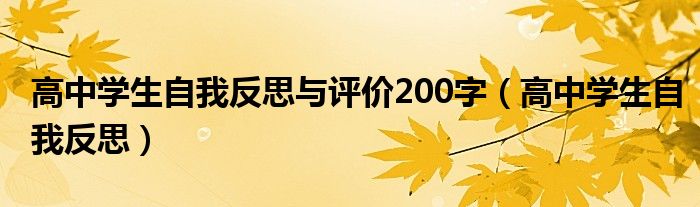 关于高中学生自我反思与评价200字,高中学生自我反思这个很多人还不知道,今天菲菲来为大家解答以上的问题,现在让我们一起来看看吧!