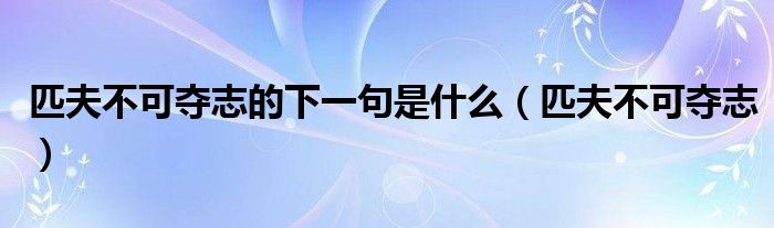关于匹夫不可夺志的下一句是什么,匹夫不可夺志这个很多人还不知道,今天菲菲来为大家解答以上的问题,现在让我们一起来看看吧!