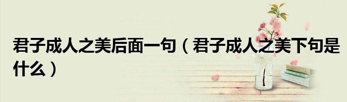关于君子成人之美后面一句,君子成人之美下句是什么这个很多人还不知道,今天菲菲来为大家解答以上的问题,现在让我们一起来看看吧!