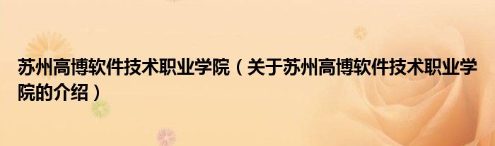 苏州高博软件技术职业学院(关于苏州高博软件技术职业学院的介绍)