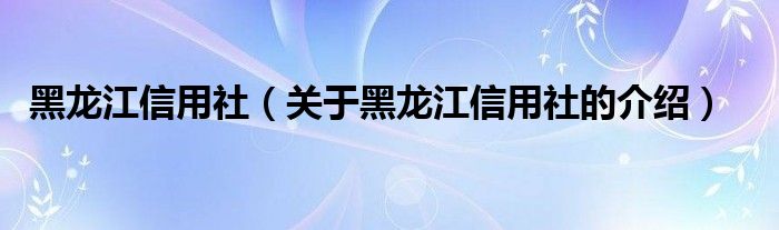 大家好,小都来为大家解答以上的问题。黑龙江信用社,关于黑龙江信用社的介绍很多人还不知道,现在让我们一起来看看吧!