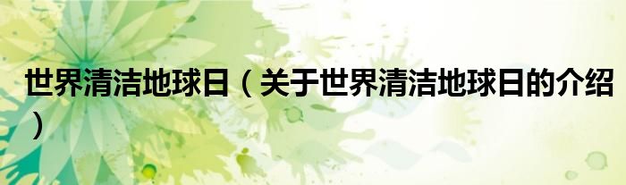 大家好,小都来为大家解答以上的问题。世界清洁地球日,关于世界清洁地球日的介绍很多人还不知道,现在让我们一起来看看吧!