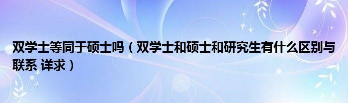 关于双学士等同于硕士吗,双学士和硕士和研究生有什么区别与联系 详求这个很多人还不知道,今天菲菲来为大家解答以上的问题,现在让我们一起来看看吧!