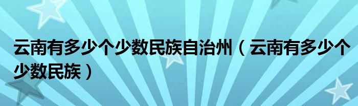 云南有多少个少数民族自治州(云南有多少个少数民族)