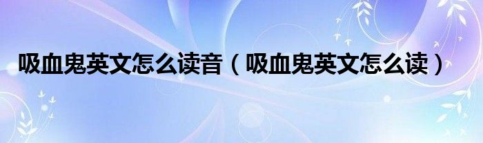 关于吸血鬼英文怎么读音,吸血鬼英文怎么读这个很多人还不知道,今天菲菲来为大家解答以上的问题,现在让我们一起来看看吧!