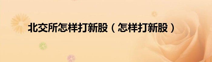 关于北交所怎样打新股,怎样打新股这个很多人还不知道,今天菲菲来为大家解答以上的问题,现在让我们一起来看看吧!