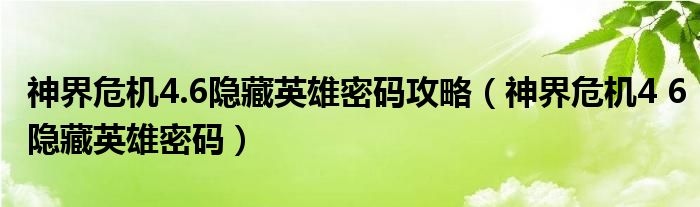 神界危机4.6隐藏英雄密码攻略(神界危机46隐藏英雄密码)