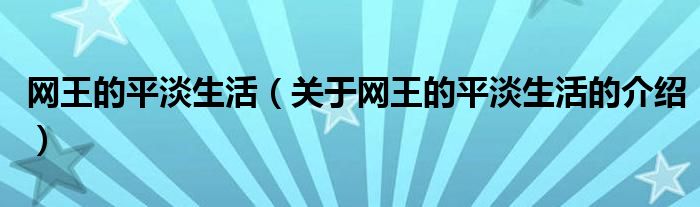 网王的平淡生活(关于网王的平淡生活的介绍)