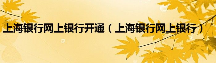 上海银行网上银行开通,上海银行网上银行很多人还不知道,乐乐来为大家解答以上问题,现在让我们一起来看看吧!