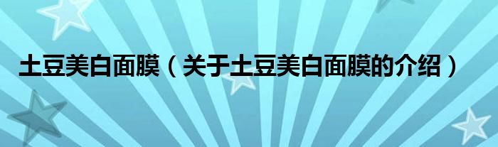 土豆美白面膜(关于土豆美白面膜的介绍)