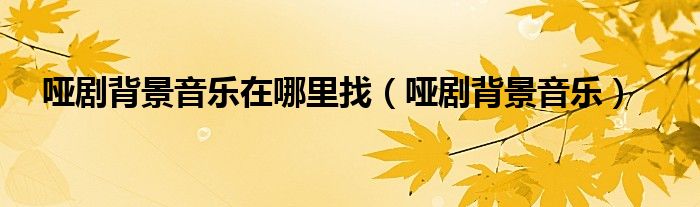 哑剧背景音乐在哪里找,哑剧背景音乐这个很多人还不知道,小飞来为大家解答以上的问题。现在让我们一起来看看吧!
