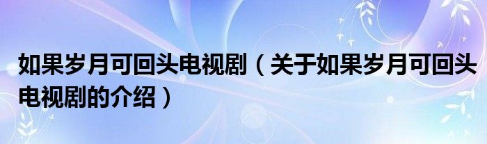 大家好,小都来为大家解答以上的问题。如果岁月可回头电视剧,关于如果岁月可回头电视剧的介绍很多人还不知道,现在让我们一起来看看吧!