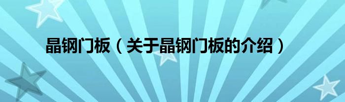 大家好,小都来为大家解答以上的问题。晶钢门板,关于晶钢门板的介绍很多人还不知道,现在让我们一起来看看吧!