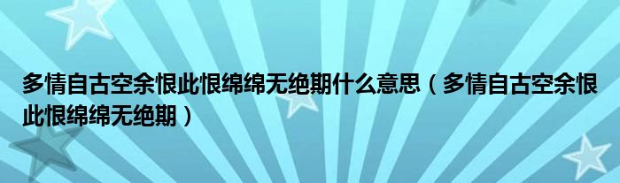 多情自古空余恨此恨绵绵无绝期什么意思(多情自古空余恨此恨绵绵无绝期)