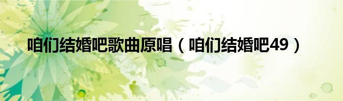 咱们结婚吧歌曲原唱,咱们结婚吧49这个很多人还不知道,小飞来为大家解答以上的问题。现在让我们一起来看看吧!