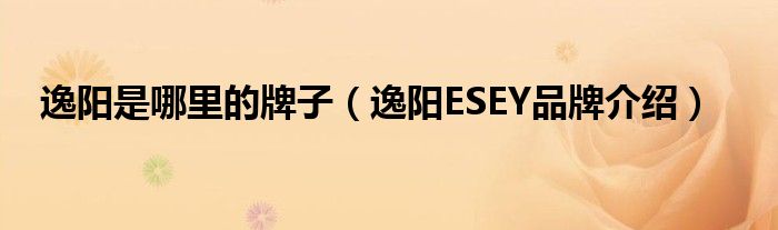 大家好,小源来为大家解答以上问题。逸阳是哪里的牌子,逸阳ESEY品牌介绍很多人还不知道,现在让我们一起来看看吧!