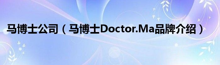马博士公司(马博士Doctor.Ma品牌介绍)