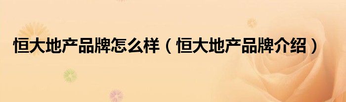 大家好,小源来为大家解答以上问题。恒大地产品牌怎么样,恒大地产品牌介绍很多人还不知道,现在让我们一起来看看吧!