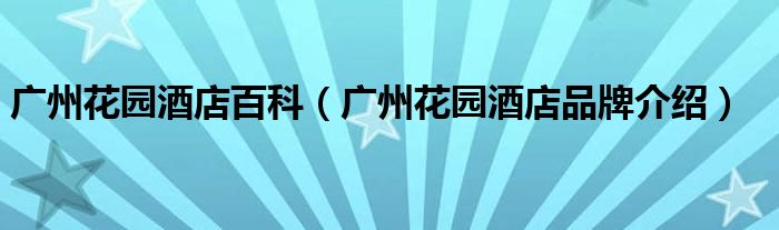 大家好,小源来为大家解答以上问题。广州花园酒店百科,广州花园酒店品牌介绍很多人还不知道,现在让我们一起来看看吧!