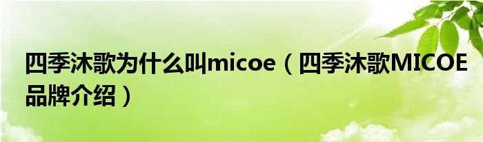 大家好,小源来为大家解答以上问题。四季沐歌为什么叫micoe,四季沐歌MICOE品牌介绍很多人还不知道,现在让我们一起来看看吧!
