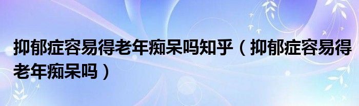 大家好,linda来为大家解答以上的问题。抑郁症容易得老年痴呆吗知乎,抑郁症容易得老年痴呆吗很多人还不知道,现在让我们一起来看看吧!